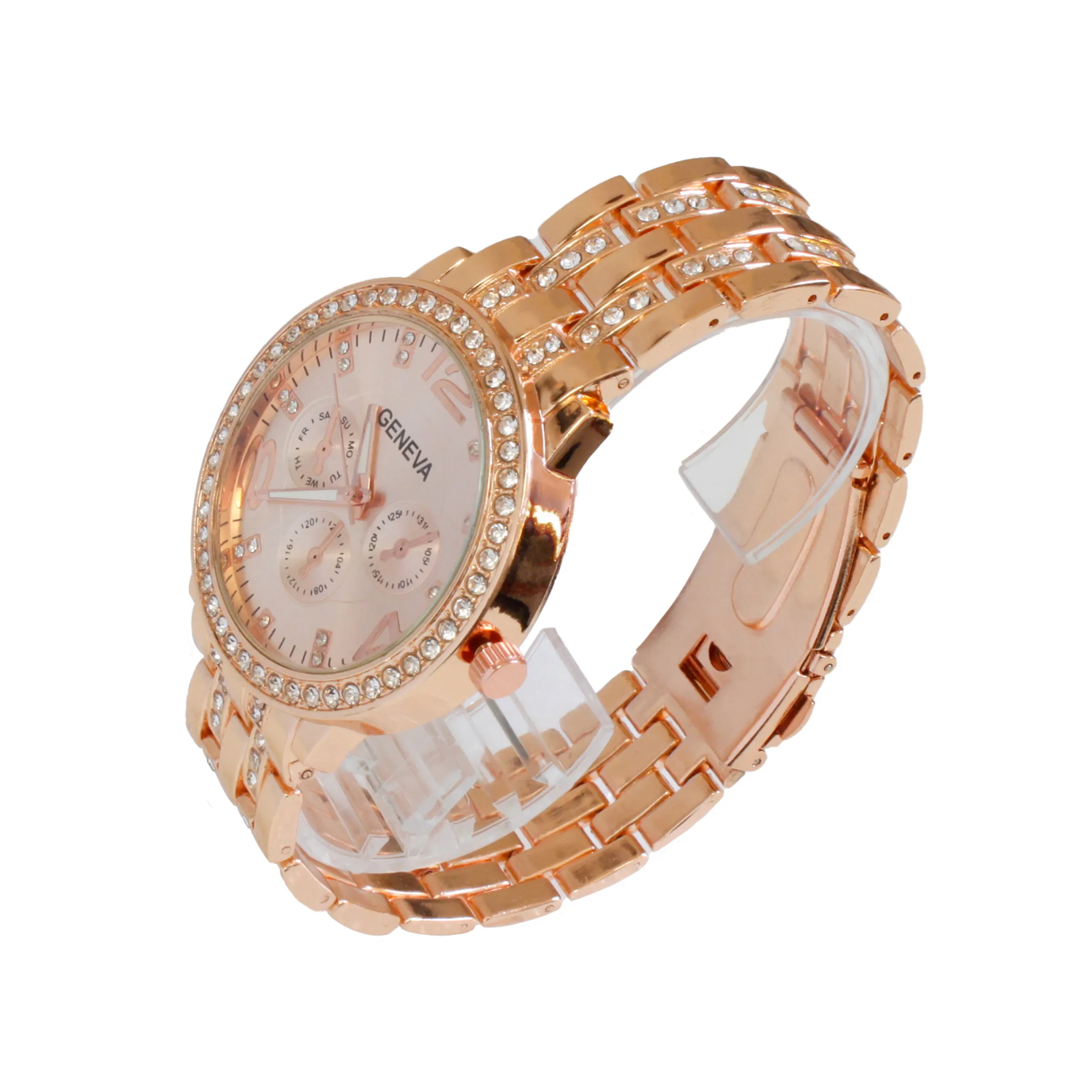 O Relógio Analógico Geneva 1102 RG é um modelo feminino com movimento de quartzo com caixa e bracelete em liga metálica, decorado com pequenos brilhantes, transmitindo sofisticação e elegância . Ideal para quem procura uma peça com presença, porém acessível, para o dia-a-dia.