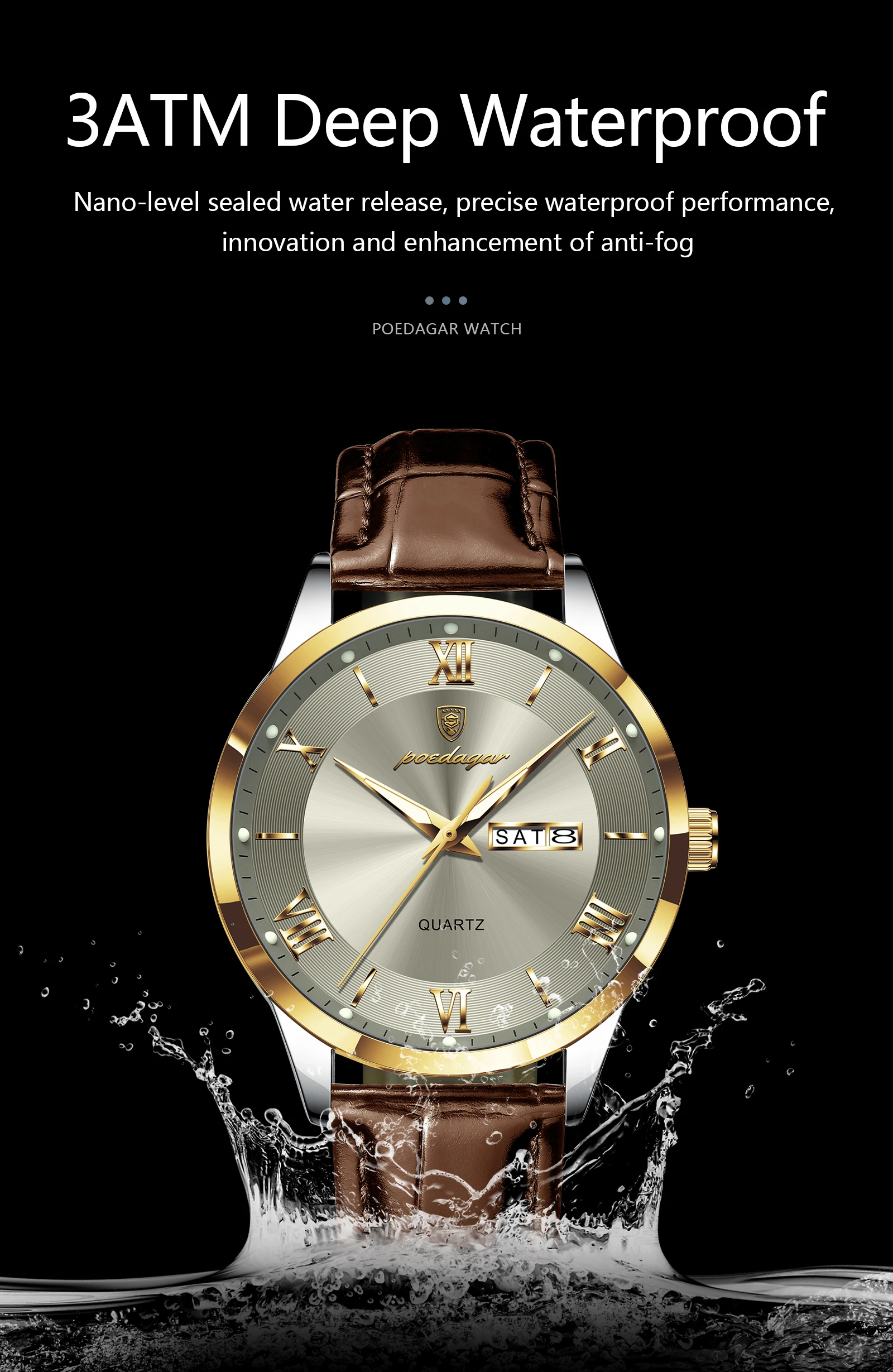 O Poedagar 978 destaca-se pelo seu design sofisticado e minimalista, com numerais romanos e acabamento refinado no mostrador. Uma escolha perfeita para quem procura um relógio elegante, discreto e versátil para qualquer ocasião.