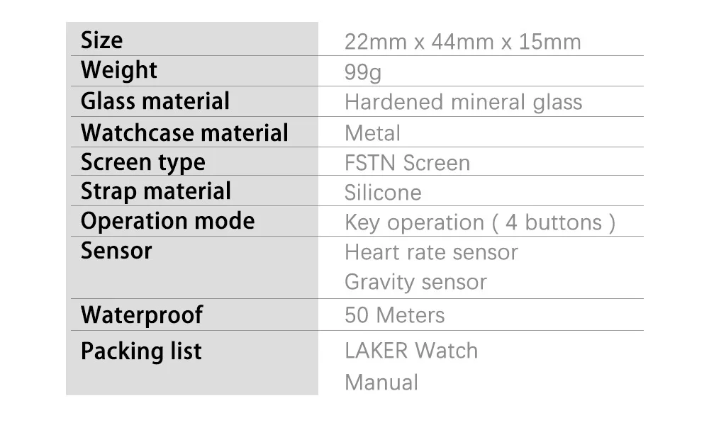 O North Edge Laker é um relógio desportivo inteligente desenvolvido para utilizadores ativos que procuram um equipamento robusto, funcional e preparado para o exterior. Com caixa metálica resistente, mostrador digital FSTN de alto contraste e impermeabilidade até 50M, acompanha-te na corrida, caminhada, treino diário ou aventura ao ar livre, monitorizando os principais dados de atividade e saúde.